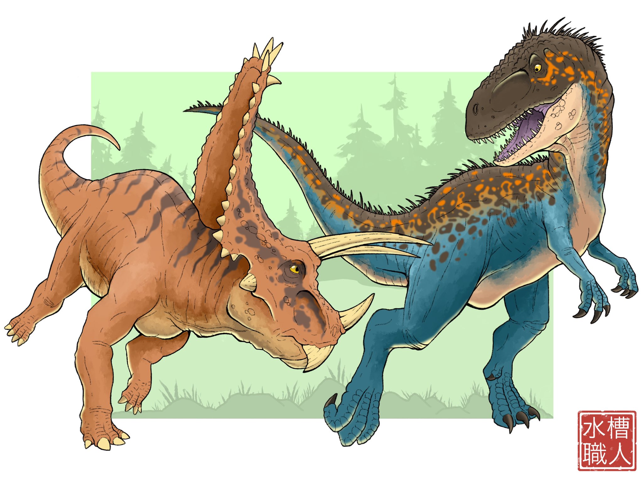 Aquariumaster On Twitter Prey That Can Fight Back This Carcharodontosaurus Might Have Met It S Match Against A Pentaceratops I Was Looking To Draw Some Bigger Jurassic World Dinosaurs In Battle As My